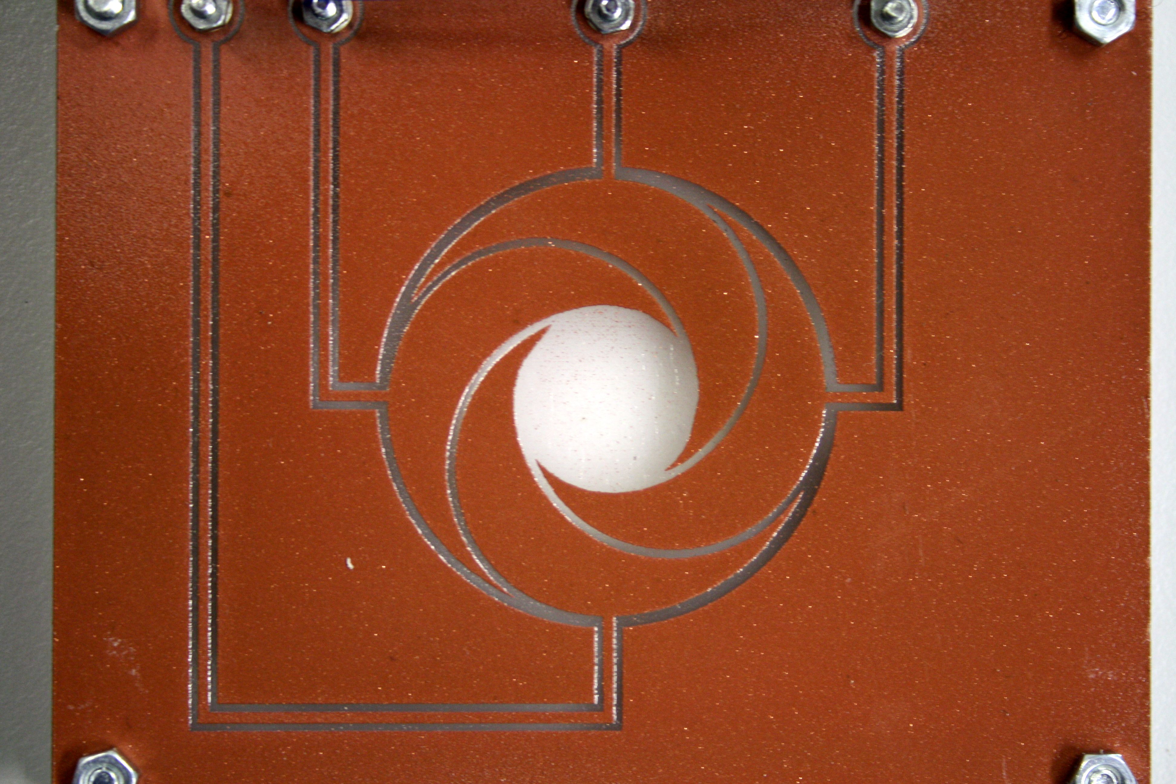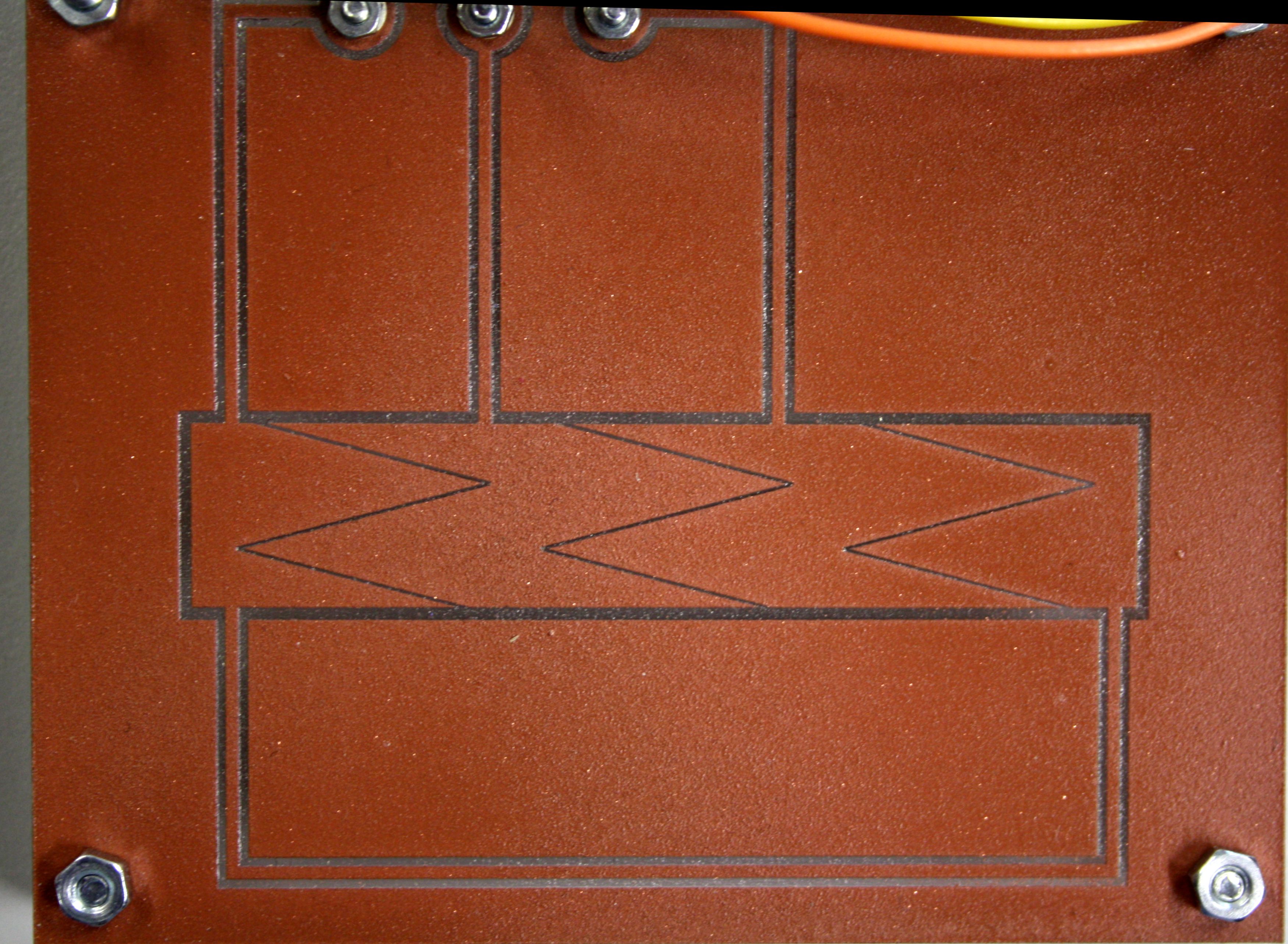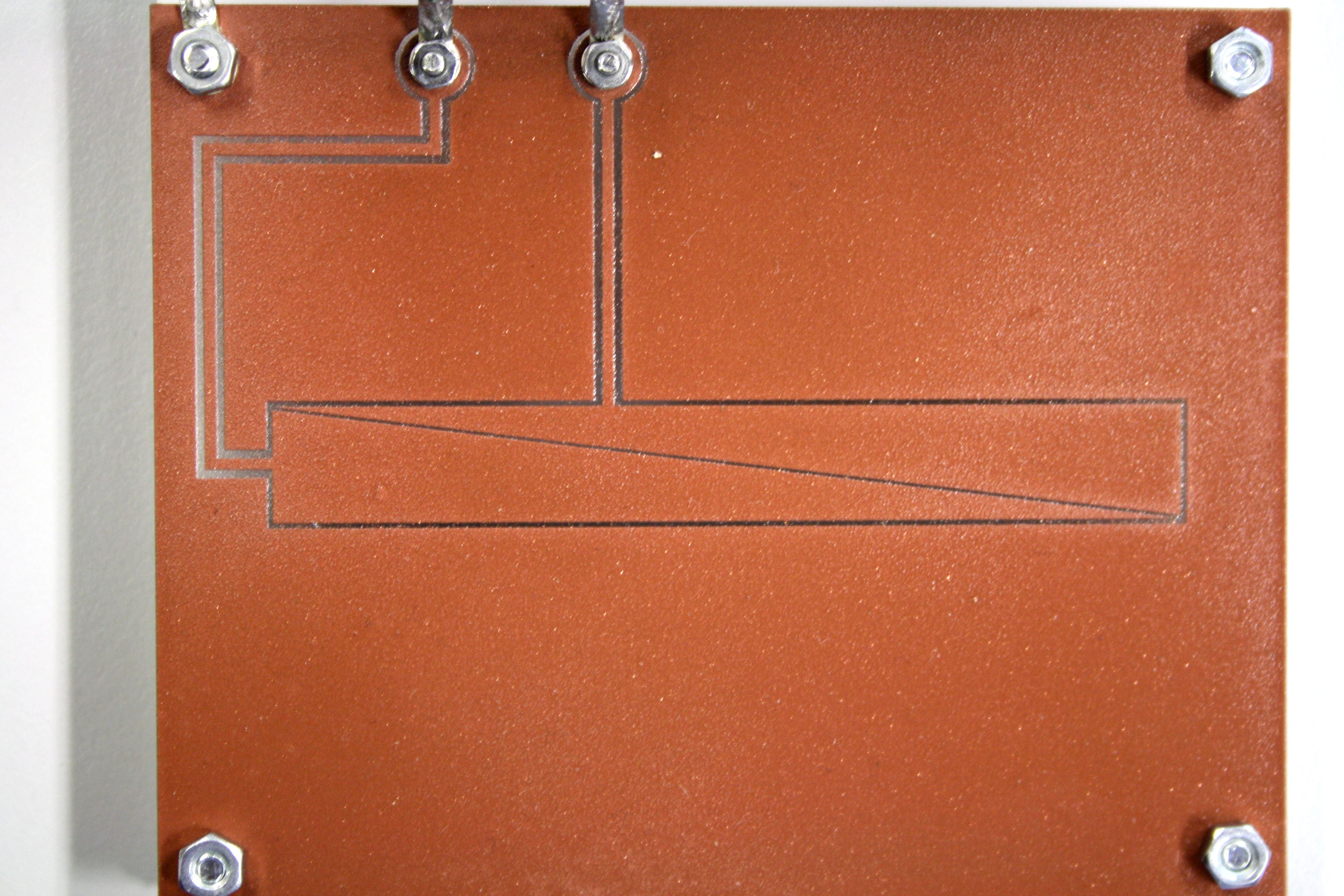 They consist of a 2mm acrylic plate with a layer of electromagnetic shielding paint from which a pattern has been removed by engraving.